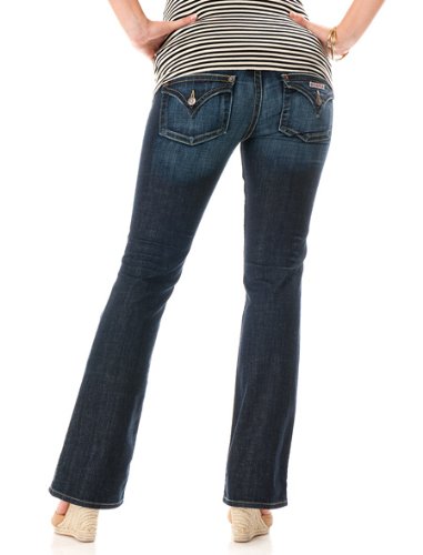 Hudson PETITE SECRET FIT BELLY TM DARK WASH 5 POCKET SIGNATURE POCKET STRETCH FABRIC BOOT CUT PLAIN WEAVE DENIM COTTON / SPANDEX 30 INCH INSEAM MATERNITY JEANS MACHINE WASHABLE MADE IN USA OF IMPORT FABRIC US Patent 7814575 and 7900276 this item may be shipped to usa only